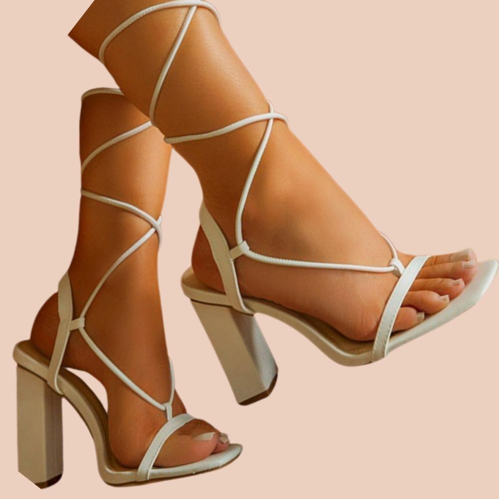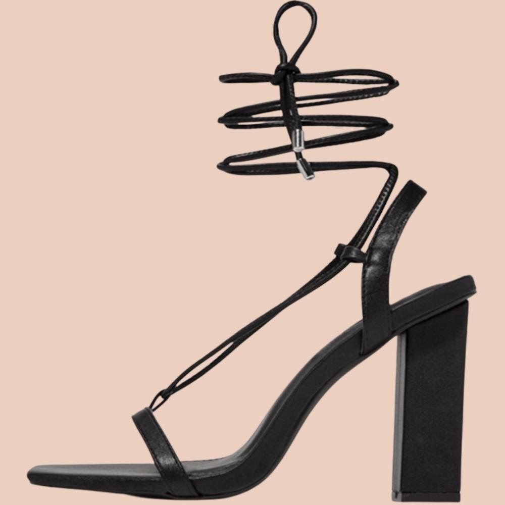 Nina | Sandale sa vezivanjem i debelom petom